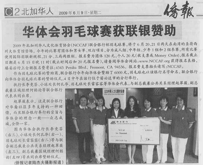 新聞網 報導2024年北加州華人文化體育協會羽球大賽