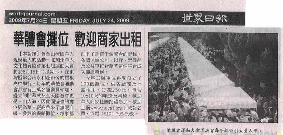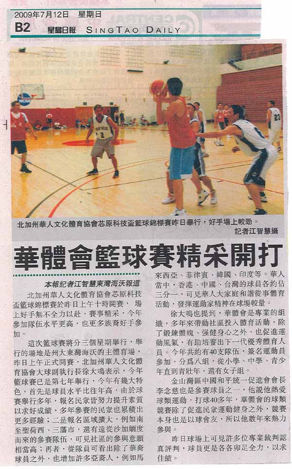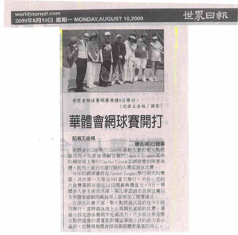 世界日報 - 華體會籃排球賽 即將開打 (6/20/2008)
