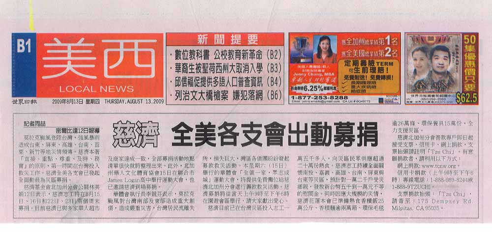 僑 報 - 武術名師賑災表演將隆重登場 (5/23/2008)